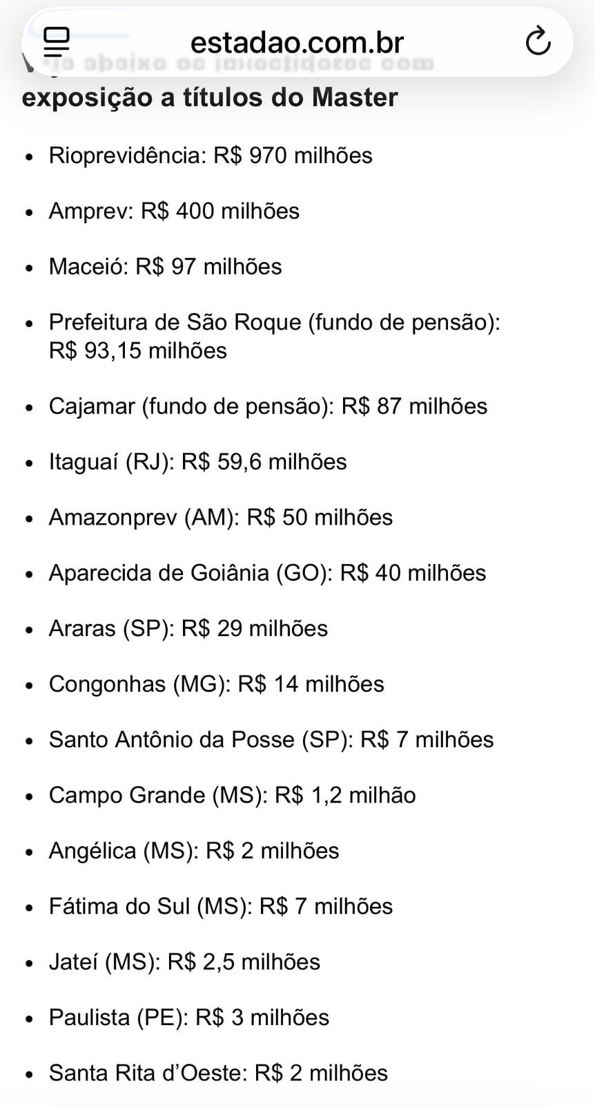 Na prática, se as gestões municipais e estaduais que fizeram aplicações milionárias nos fundos do banco que foi liquidado, os servidores podem não receber seus direitos de pensão e aposentadoria.