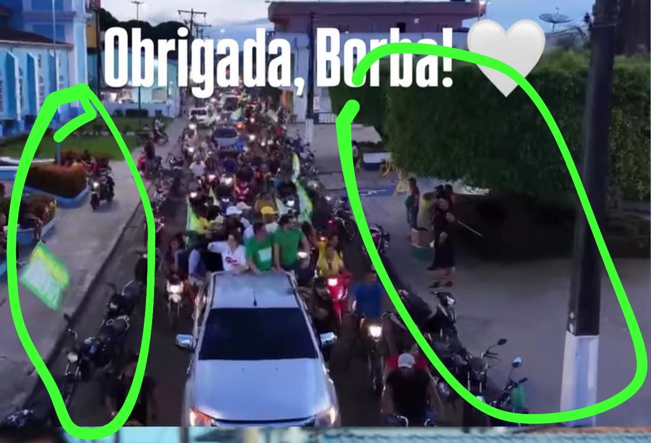 Em Borba a carreata foi aparentemente bem exitosa, foi organizada e contratada por Nildo Colares, que contratou 800 motos, que foi festejada pela equipe de Maria do Carmo. Mas a reunião em uma sede demonstrou a realidade de que não tinham sequer 200 pessoas. Um público bem abaixo do que constou na carreata.